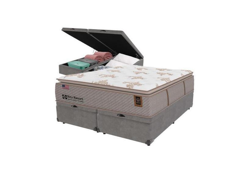 Cama Box Baú Cinza E Colchão King Ritz Resort Pillow High Tech Sealy