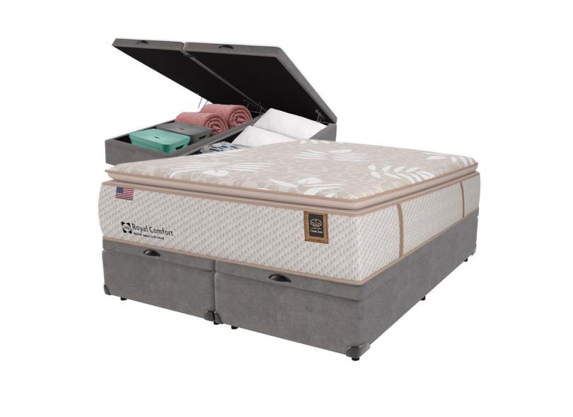 Cama Box Baú Cinza e Colchão King Royal Comfort Plus Molas lfk Sealy