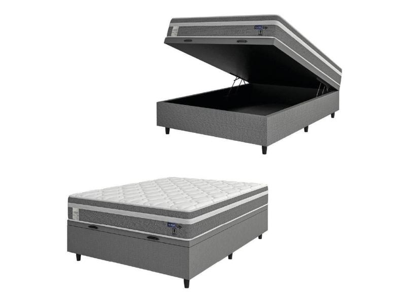Cama Box Baú Colchão Casal Molas Ensacadas Euro In Up 138x188x67cm Cinza - Branco Probel Cinza-bran