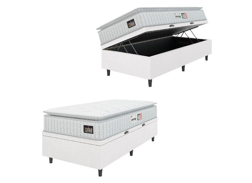 Cama Box Baú Colchão Solteiro Espuma D33 Vangogh Pillow Top 88x188x70cm Linho Branco Hellen - Suporta até 120kg por Pessoa