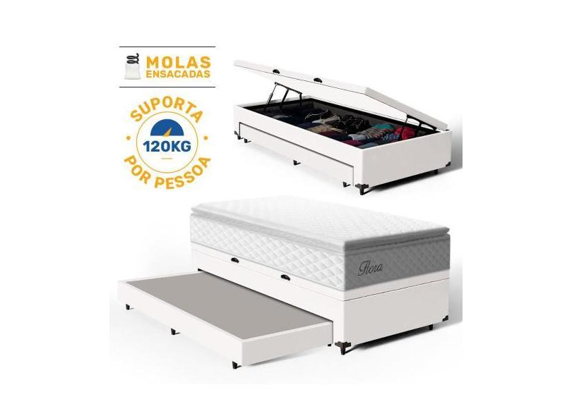Cama Box Baú com Colchão de Molas Ensacadas Pillow Top Flora + Auxilia