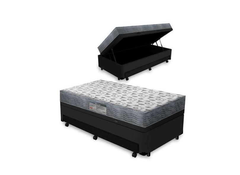 Cama Box Baú E Auxiliar Solteiro Preta + Colchão De Espuma D33 Ortobom