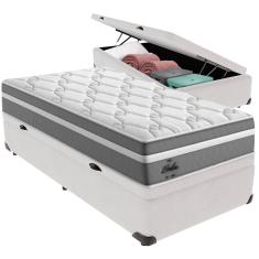 Cama Box Baú e Colchão Berlim Molas Ensacadas Solteiro Probel, Branco