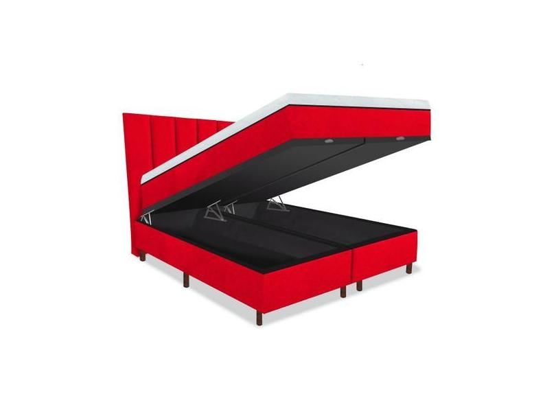Cama Box Baú e Colchão Magnético + Cabeceira - Eco New Luxo, Vermelho,