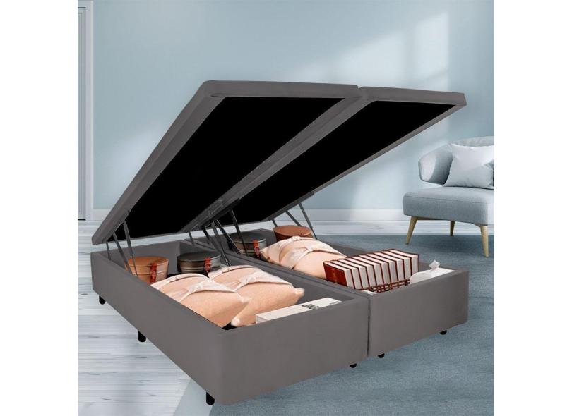 Cama Box Baú King 178x198x42cm Linho Cinza Com Pistão A Gás