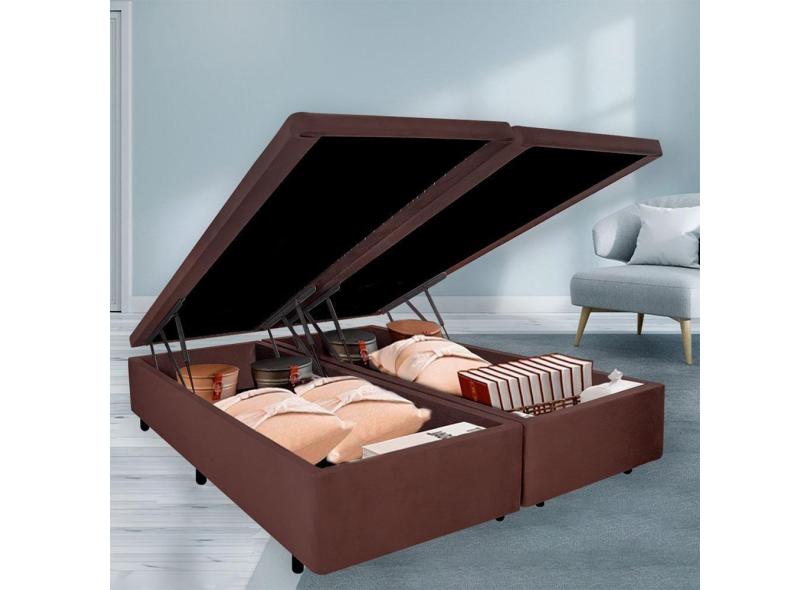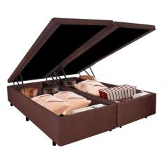 Cama Box Baú King 178x198x42cm Linho Marrom Com Pistão A Gás
