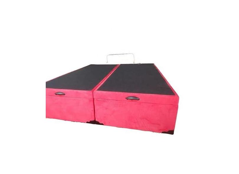 Cama Box Baú King Bipartido Blindado Suede Vermelho Com Pistão A Gás