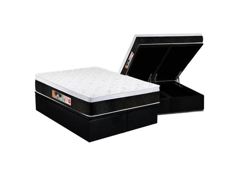 Cama Box Baú King: Colchão Espuma Castor D45 Black e White Air Euro Pillow + Base CRC Suede Black(193x203)