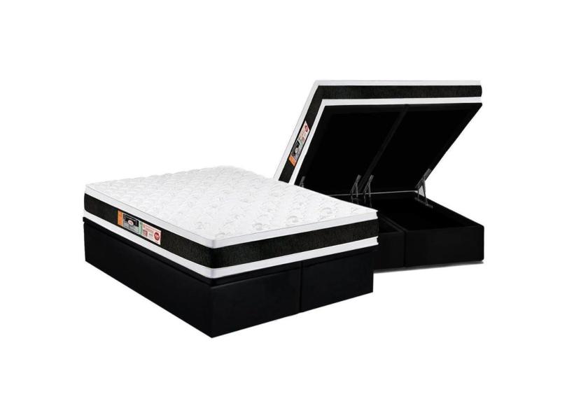 Cama Box Baú King: Colchão Espuma D45 Castor Black e White Air Double Face + Base CRC Suede Black(193x203)