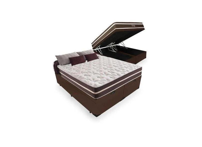 Cama Box Baú King Colchão Molas Ensacadas+Box Bipartido Bege - Lord Co