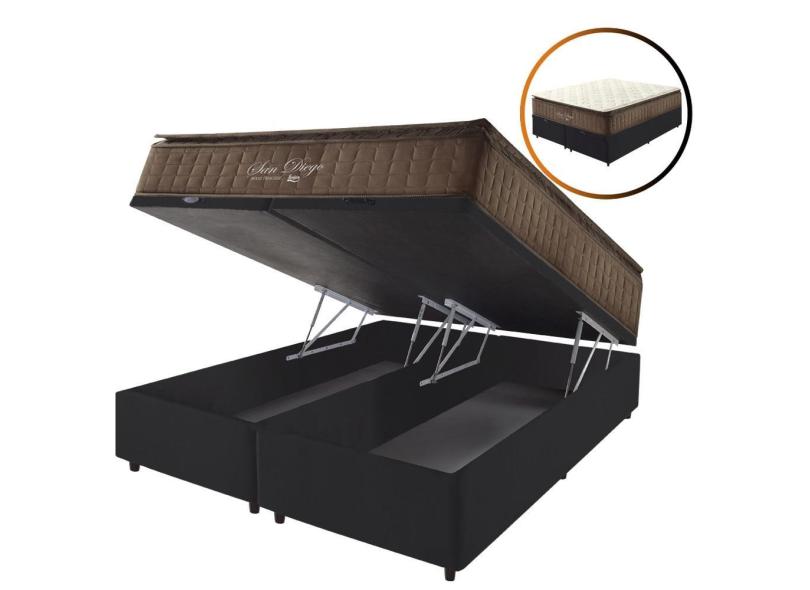 O menor preço encontrado no Brasil para Cama Box Baú King Preta + Colchão Molas Ensacadas Pillow Top San Diego 193x203x72cm atualmente é R$ 4.389,41.
