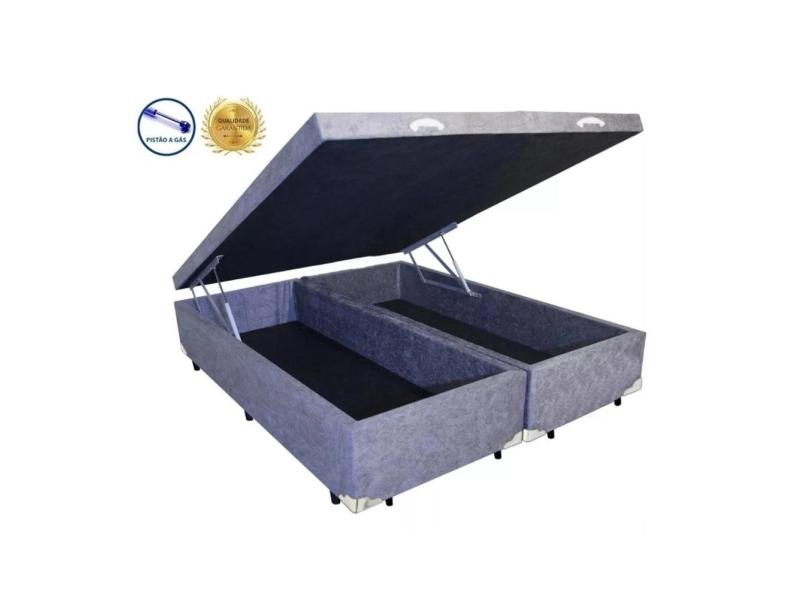 Cama Box Baú King Star Bipartido AColchoes Suede Cinza 41x193x203