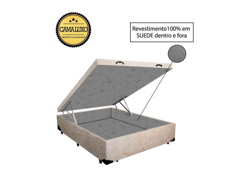 Cama Box Baú Luxo Blindado Casal AColchoes Suede Bege 41x138x188