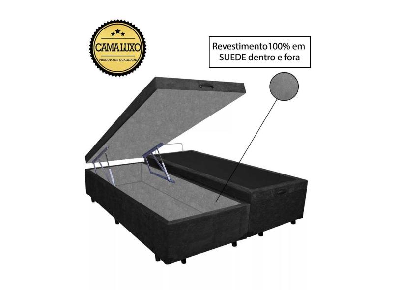 Cama Box Baú Luxo Blindado Casal Bipartido AColchoes Suede Preto 49x138x188