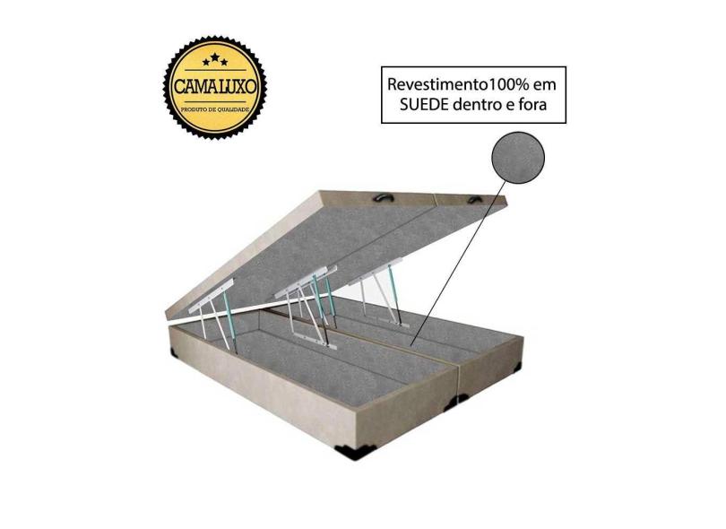 Cama Box Baú Luxo Blindado Casal Bipartido NK Camas Suede Bege 41x138x188