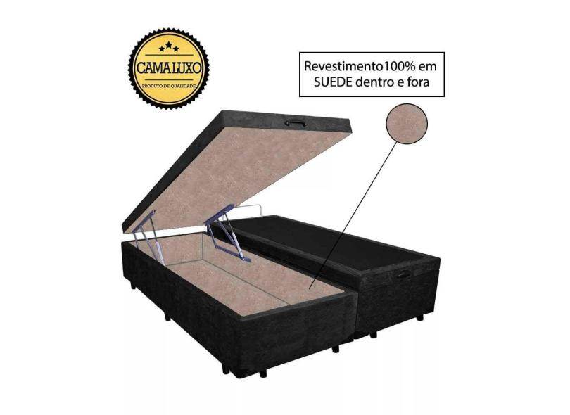 Cama Box Baú Luxo Blindado Casal Bipartido NK Camas Suede Preto 49x138x188