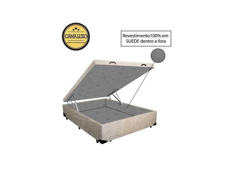 Cama Box Baú Luxo Blindado Casal Nk Camas Suede Bege 49X138x188