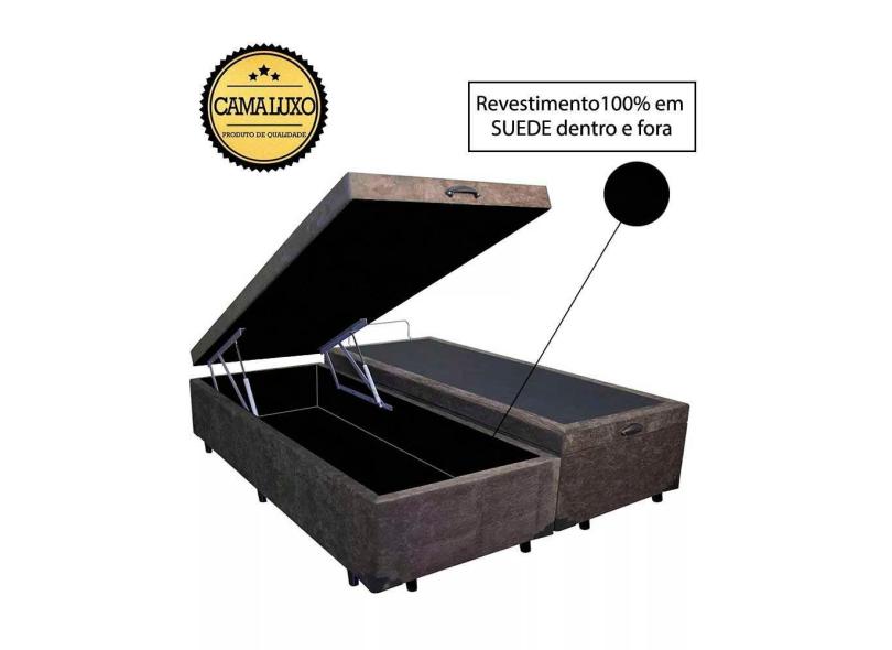 Cama Box Baú Luxo Blindado Queen Bipartido NK Camas Suede Marrom 41x158x198