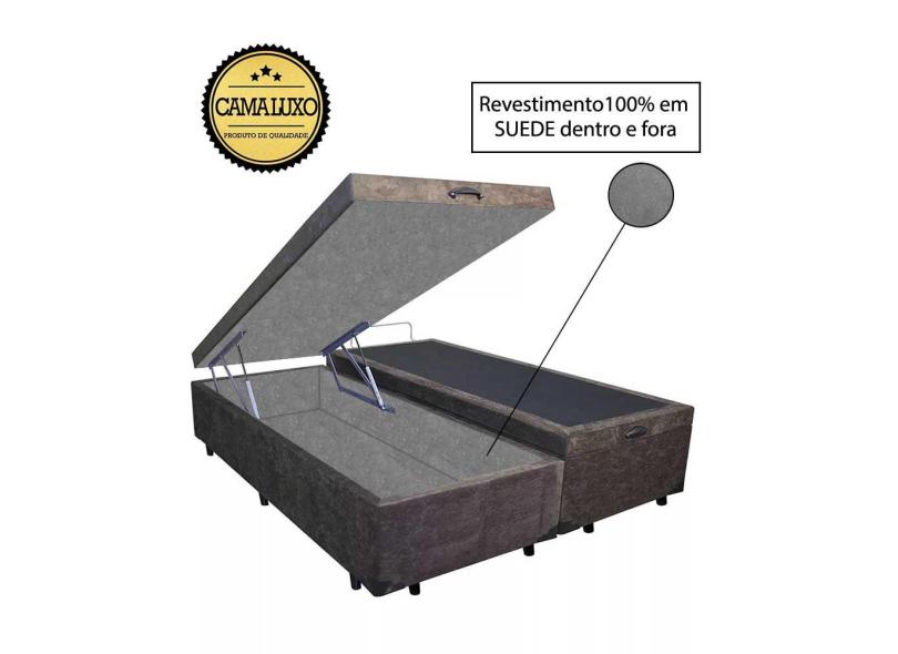 Cama Box Baú Luxo Blindado Queen Bipartido nk Camas Suede Marrom 49x158x198