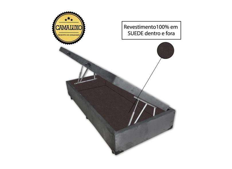 Cama Box Baú Luxo Blindado Solteirão nk Camas Suede Cinza 41x96x203