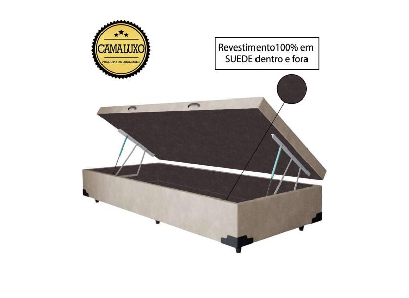 Cama Box Baú Luxo Blindado Solteiro AColchoes Suede Bege 41x88x188