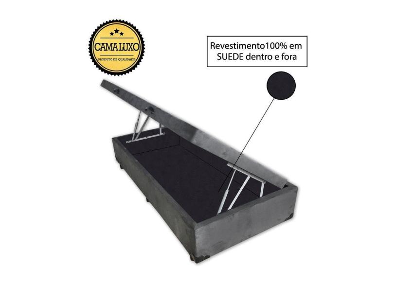 Cama Box Baú Luxo Blindado Solteiro AColchoes Suede Cinza 41x78x188