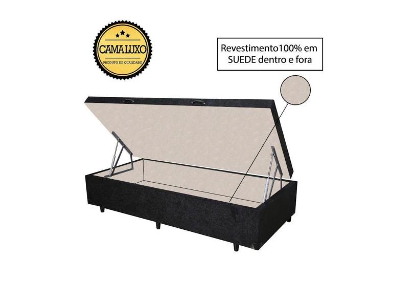 Cama Box Baú Luxo Blindado Solteiro AColchoes Suede Preto 49x88x188