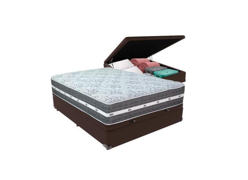 Cama Box Baú Marrom e Colchão Black Graphite Molas Ensacadas Casal 138