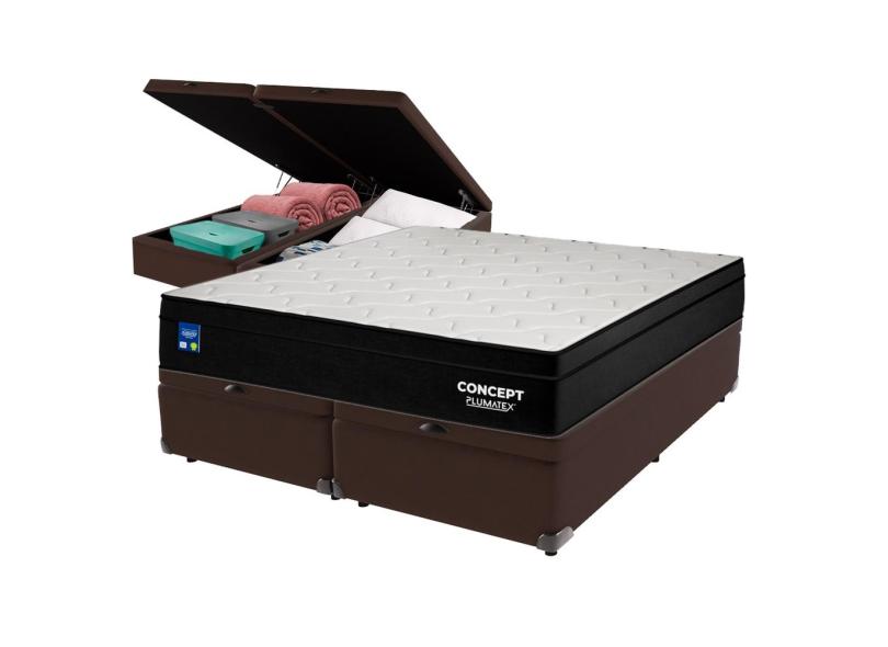 Cama Box Baú Marrom e Colchão Queen Concept Molas Ensacadas Plumatex