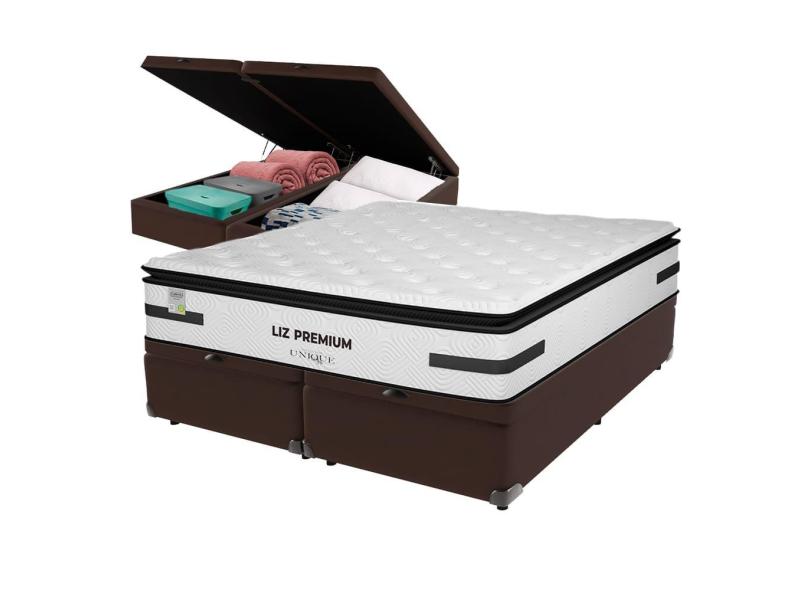 Cama Box Baú Marrom e Colchão Queen Liz Premium Molas Ensacadas Unique