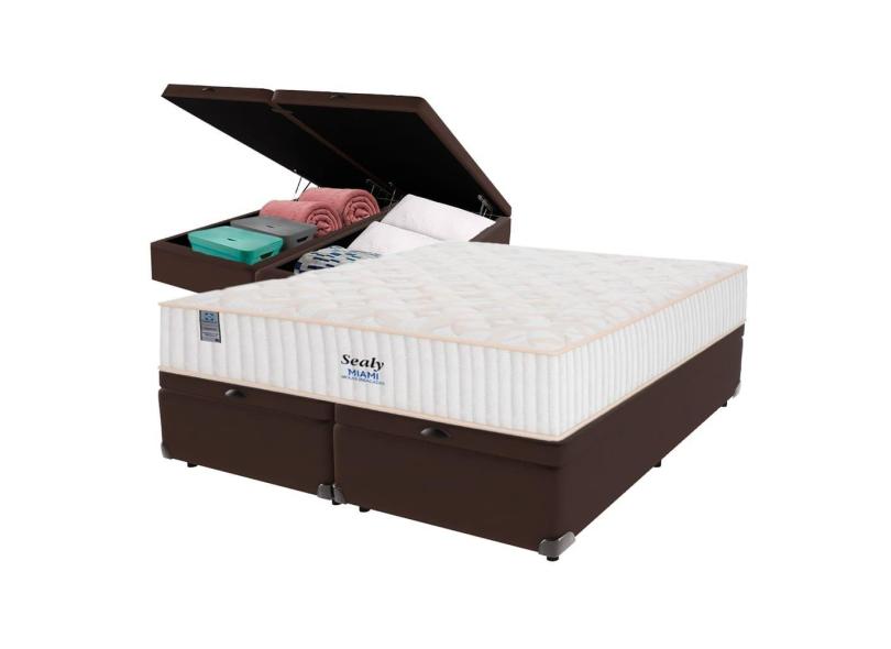 Cama Box Baú Marrom e Colchão Queen Miami Molas Ensacadas Euro Pillow Sealy