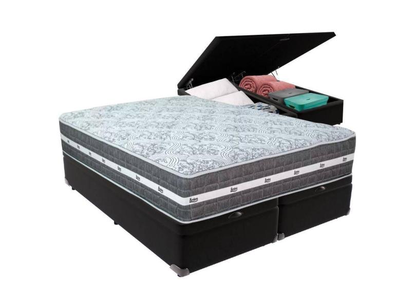 Cama Box Baú Preto E Colchão Black Graphite Molas Ensacadas Queen 158x198x32 Anjos