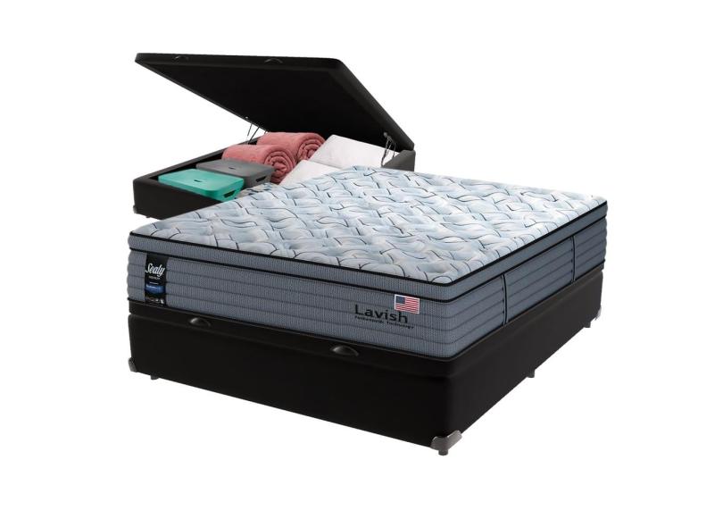Cama Box Baú Preto e Colchão Casal Lavish Molas Ensacadas Sealy