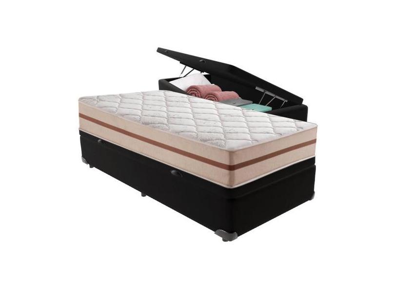 Cama Box Baú Preto e Colchão Classic 22 cm Molas ensacadas Solteiro An