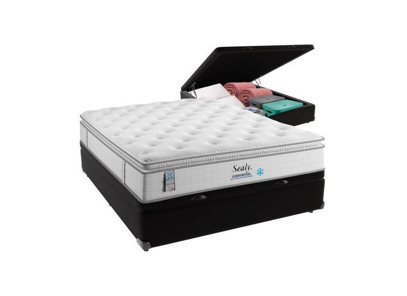 Cama Box Baú Preto e Colchão Confort Gel Molas Ensacadas com Pillow To