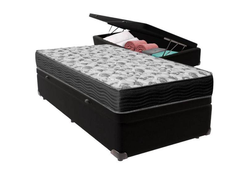 O menor preço encontrado no Brasil para Cama Box Baú Preto E Colchão Iso100 Espuma D33 Solteiro Ortobom atualmente é R$ 1.219,49.