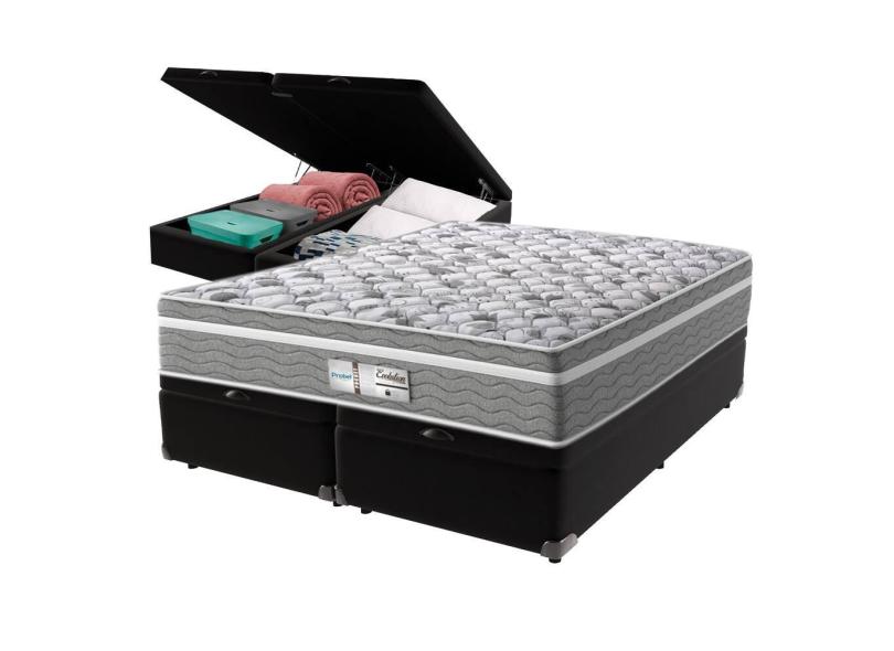O menor preço encontrado no Brasil para Cama Box Baú Preto e Colchão Queen Evolution Molas Ensacadas Probel atualmente é R$ 2.822,39.