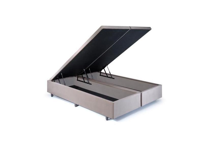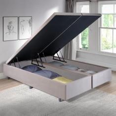 Cama Box Baú Queen 158x198x42cm Suede Bege com Pistão a Gás - Cama InH