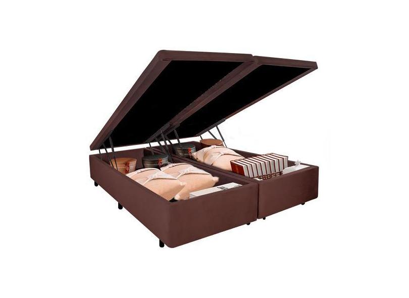 Cama Box Baú Queen 158X198x42cm Suede Marrom Com Pistão A Gás - Cama I