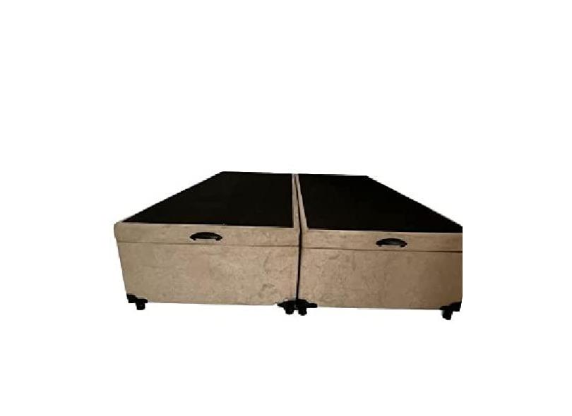 Cama Box Baú Queen Bipartido Suede Bege Com Pistão A Gás