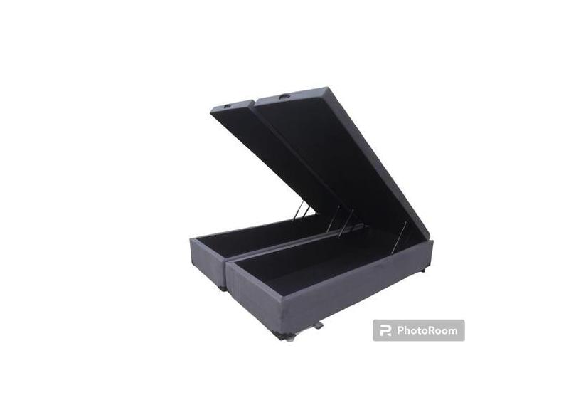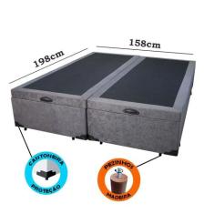Cama Box Baú Queen Bipartido Suede Cinza Com Pistão A Gás - Imperium D