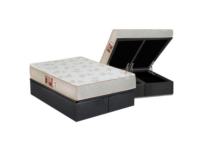 Cama Box Baú Queen: Colchão Espuma Castor D33 Sleep Max Relax + Base Crc Suede Gray(158X198)