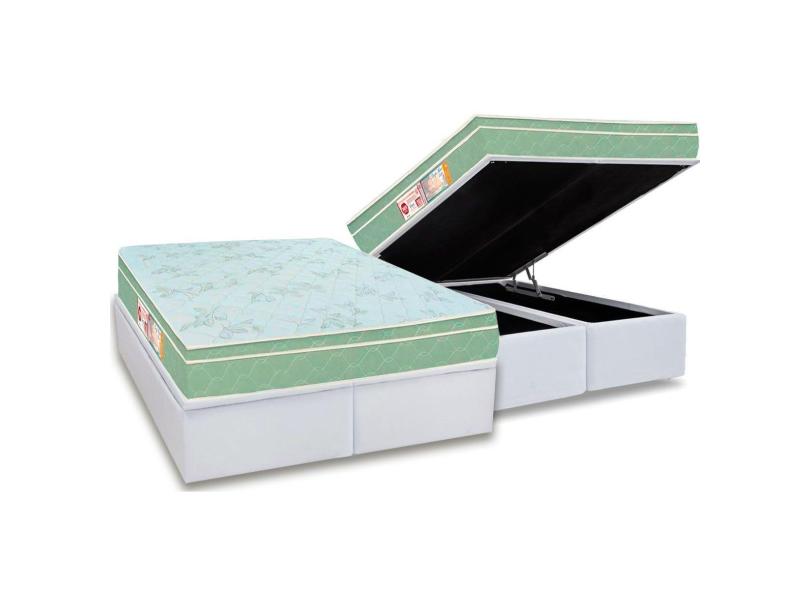 Cama Box Bau Queen Colchao Espuma D33 Castor Sleep Max Euro Pillow Base Crc Courano White 158X198