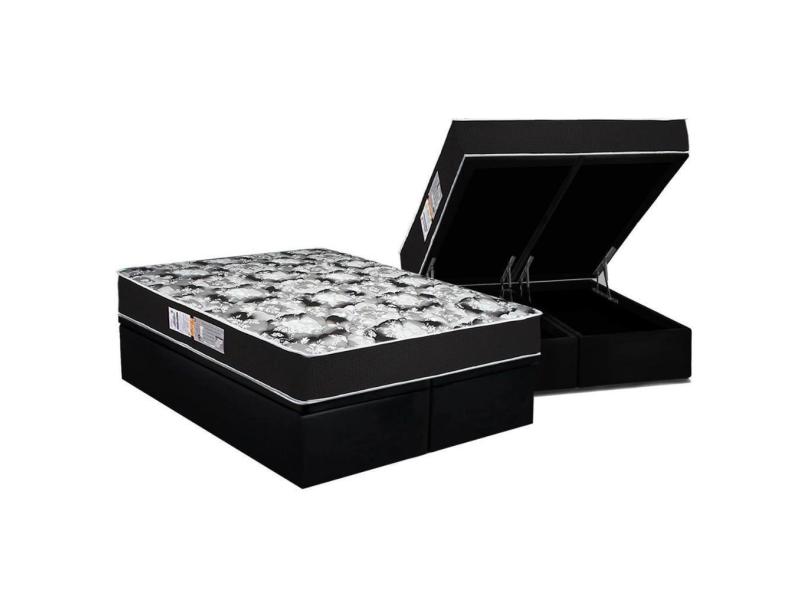 Cama Box Baú Queen: Colchão Espuma D45 Luckspuma Gran Luck Pro + Base Crc Suede Black(158x198)