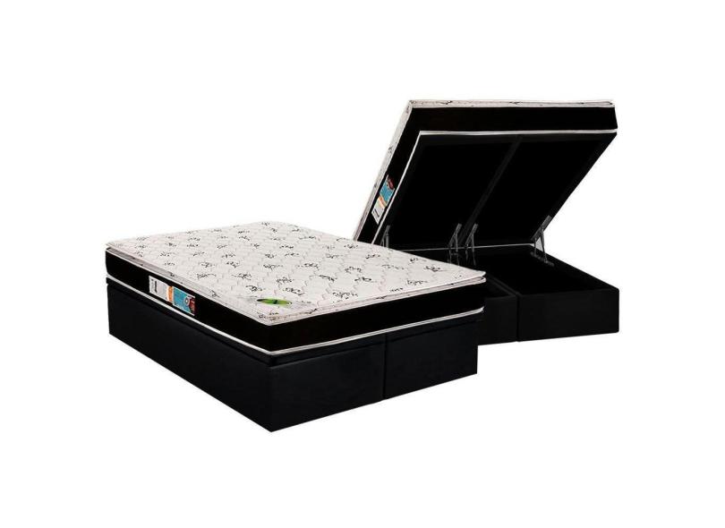 Cama Box Baú Queen: Colchão Espuma Luckspuma D33 / Ag65 Aspen Super Firme + Base Black(158X198)