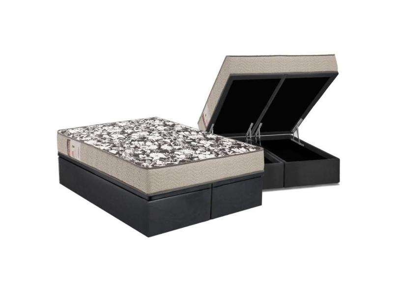 Cama Box Baú Queen: Colchão Espuma Ortobom D26 Physical Ultra Resistente + Base Gray(158X198)
