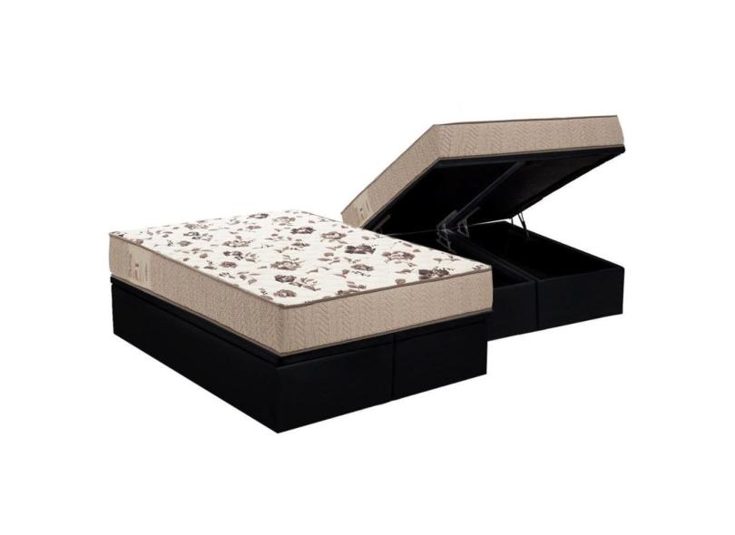 Cama Box Baú Queen: Colchão Espuma Ortobom D28 Physical Mega Resistente + Base CRC Courano Black(158x198)