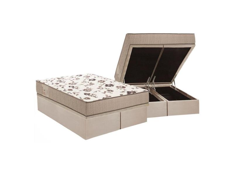 Cama Box Baú Queen: Colchão Espuma Ortobom D28 Physical Mega ResistenteBase Suede Clean(158x198)