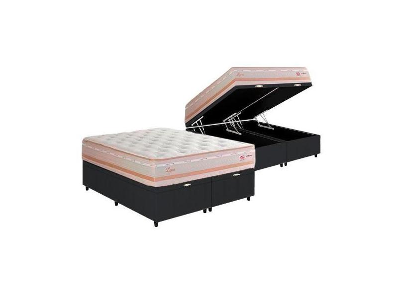 Cama Box Baú Queen + Colchão Herval Lyon Molas Maxspring 158X198x74