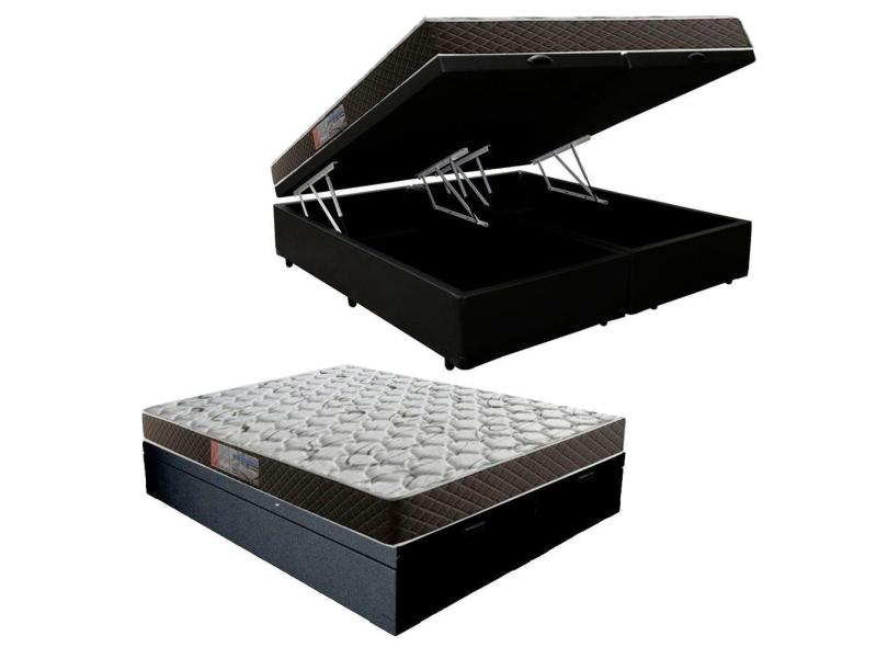 Cama Box Baú Queen Colchão Mola Ensacada Belos Sonhos + Box Sintético 71x158x198 Preto